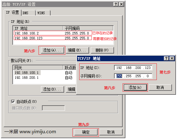 在Windows系统下即使只有一块网卡,同样可以实现双IP访问不同网段。方法如下:
