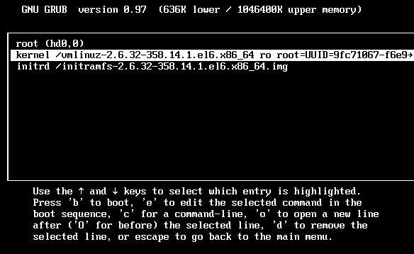 这看不出开机启动卡在哪里,只好重启按住”e”键,进入启动菜单: